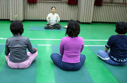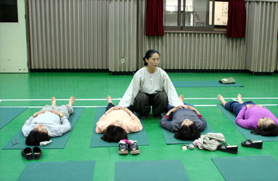 - 지체 장애 교육원 한국 육영학교에서 2005년 4월 27일 본원 윤주영 원장님이 지체장애 지도교사의 건강 회복과 스트레스 해소에 관한 명상요가를 지도하였습니다. 요가를 제대로 알고 제대로 하고 싶다는 선생님들의 요청에 의해 요가에 관한 간단한 강의와 요가의 수행법인 이완법, 호흡법, 명상 ,요가체조 등의 분야를 한 대목 한 대목씩 정확하고 심도 깊게 지도하였습니다. 재미있었던 것은 호흡법 지도를 받은 후에 자꾸만 호흡이 끝도 없이 무한히 내쉬어져 죽으면 어떻게 하나 겁이 나서 얼른 숨을 쉬었다는 선생님의 체험담이었습니다. 호흡지도에 의해 자신도 모르게 저절로 호흡이 길어져서인데 자신이 체험을 하면서 도 그것이 얼마나 좋은 체험인지도 모르고 오히려 겁을 내고 있다니요..아사나 후에는 1년 이상 요가를 해왔다는 선생님이 목뒤와 팔이 차가워지는 느낌을 그렇게 말씀하신 것입니다. 시간이 끝나자 늘 배에 가스가 차서 고생하던 선생님이 차가운데 누워 있었는데도 전혀 가스가 차지 않는다고 놀라워하셨습니다. 모두 몸과 마음이 가볍고 상쾌해졌다는 이야기를 듣고 체육관을 나서는데 지도를 요청했던 선생님께서 그냥 테이프를 따라 배우려 했는데, 지도자 없이는 불가능하다는 것을 알았다고 하시며 멀리까지 배웅해주며 아쉬어하셨습니다.