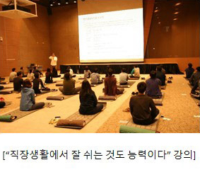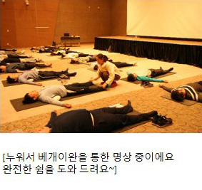 취지 : 회사생활에서 ‘잘 쉬는 것’도 능력입니다. 바쁜 생활 속에서 몸과 마음을 명상요가를 통해 풀어주고 완전히 쉬게 하여 재충전할 수 있게 합니다.