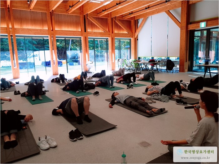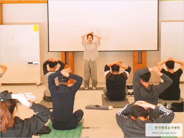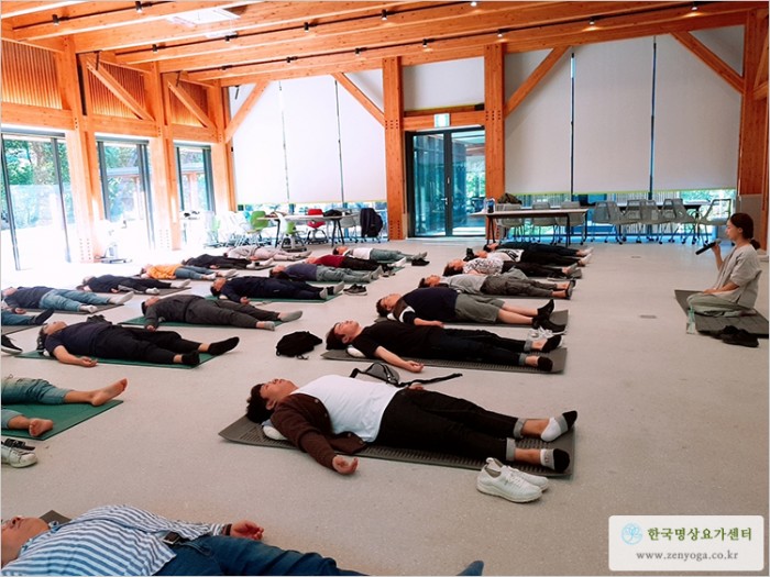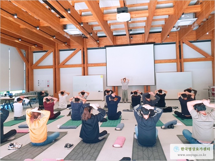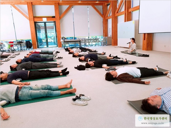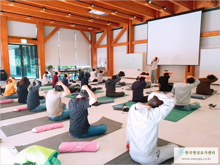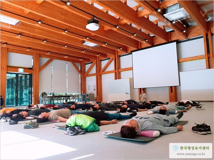 - 고도로 긴장된 업무 환경에 있는 촬영관련 감독님, 피디님, 작가님들을 대상으로 하는 수업이었습니다. 유연성이 없다는 걱정 반, 설렘 반으로 시작된 수업. 척추를 되살려주는 "코어 아사나"도 힘겹지만 밝게 해내고 점차 심신이 일체되어 편안해지는 체험을 하셨습니다. 짧은 시간이었지만 본인의 심신을 자각하고 쉴 수 있는 시간이었다고 기쁜 마음으로 인사 나누었습니다.