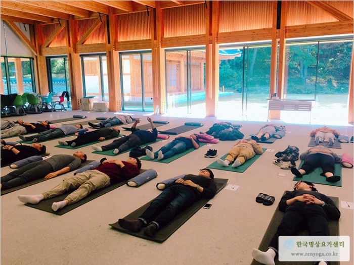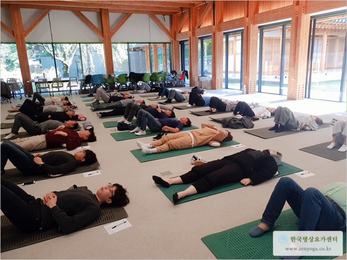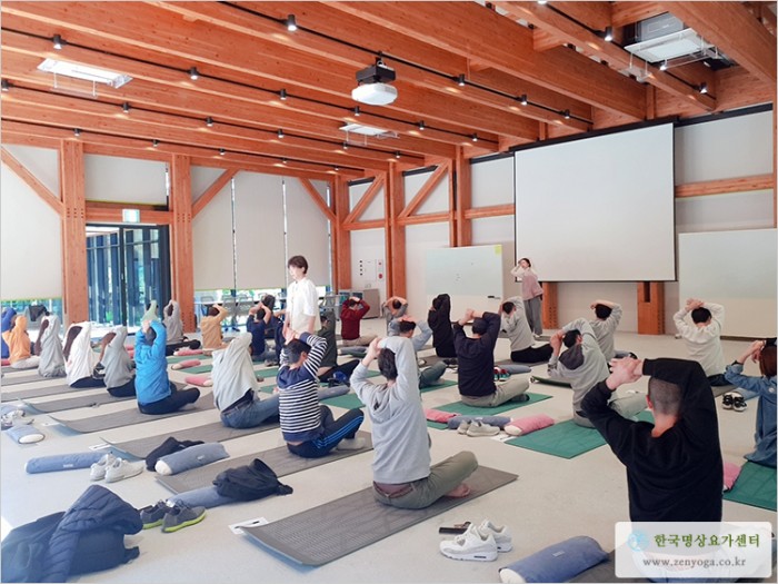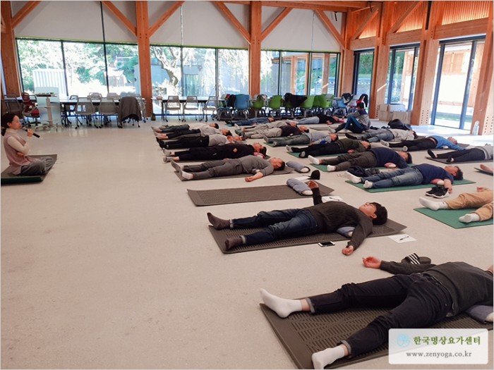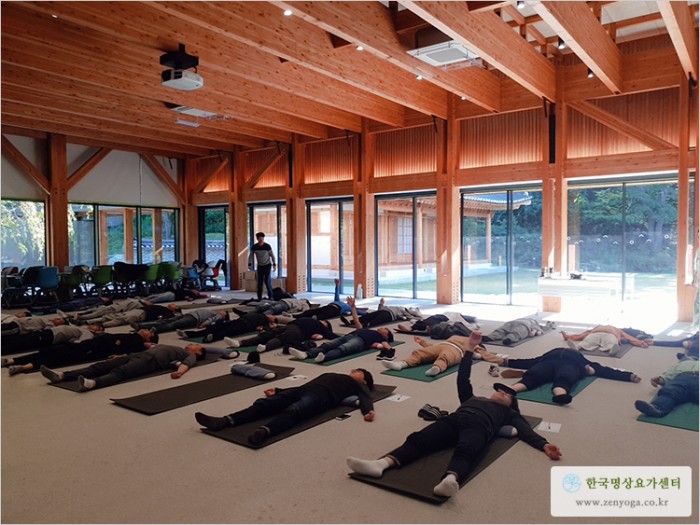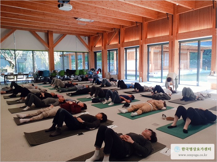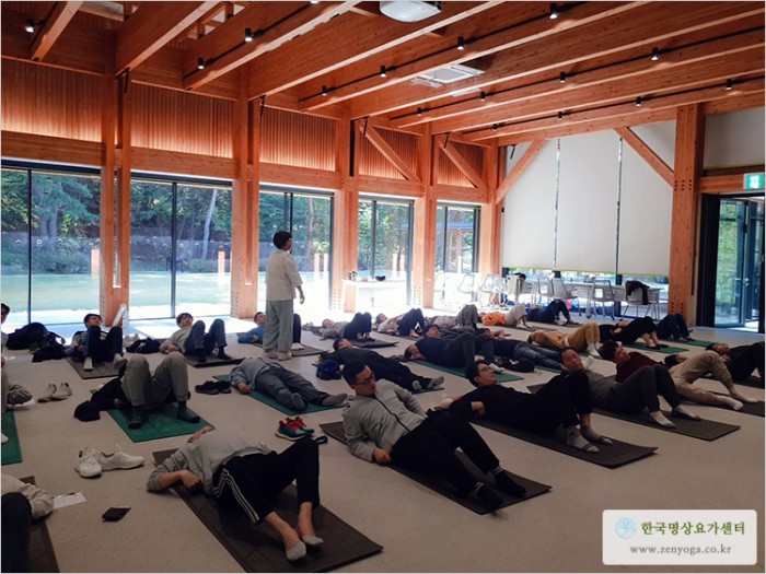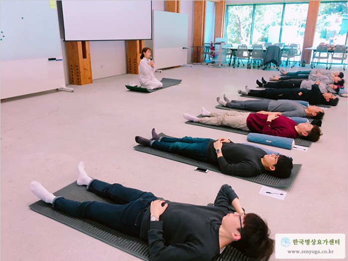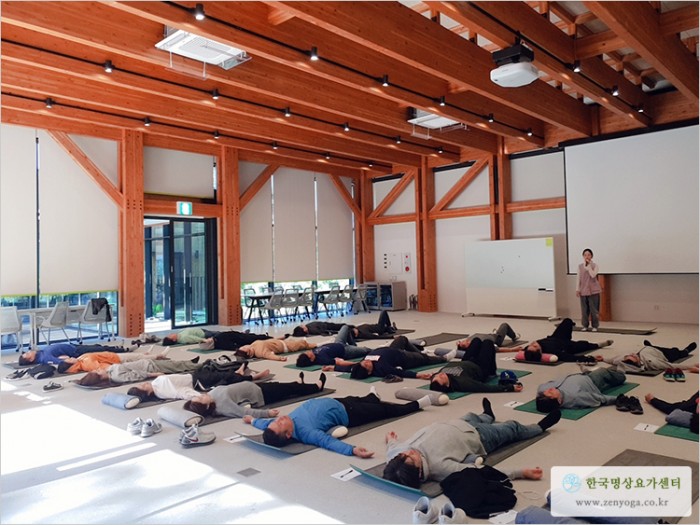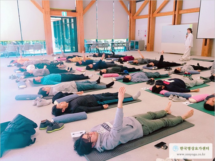 - 고도로 긴장된 업무 환경에 있는 촬영관련 감독님, 피디님, 작가님들을 대상으로 하는 수업이었습니다. 유연성이 없다는 걱정 반, 설렘 반으로 시작된 수업. 척추를 되살려주는 "코어 아사나"도 힘겹지만 밝게 해내고 점차 심신이 일체되어 편안해지는 체험을 하셨습니다. 짧은 시간이었지만 본인의 심신을 자각하고 쉴 수 있는 시간이었다고 기쁜 마음으로 인사 나누었습니다.