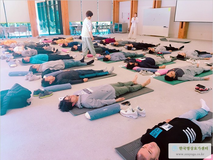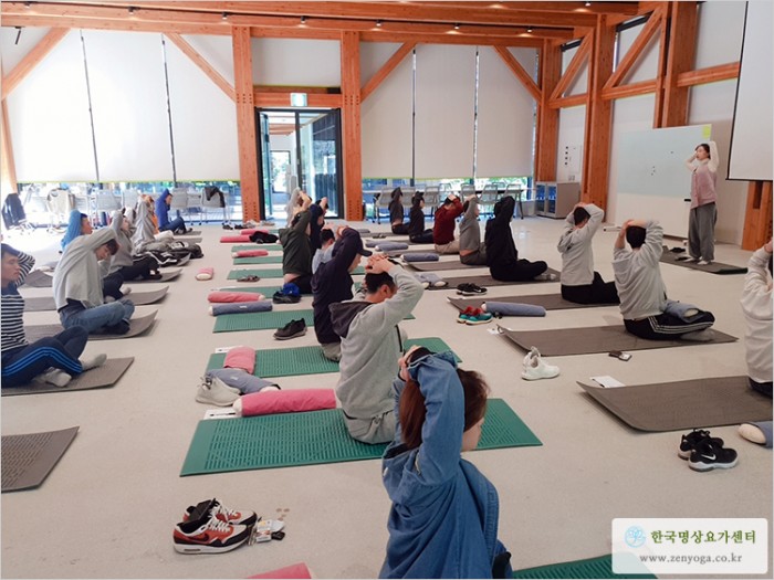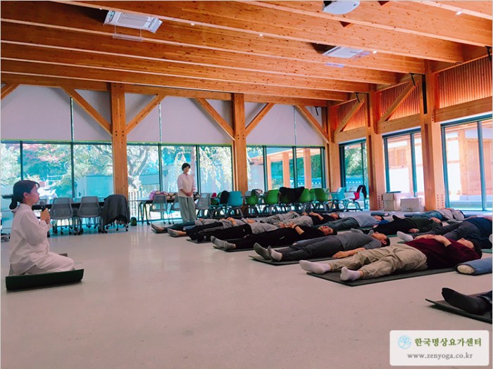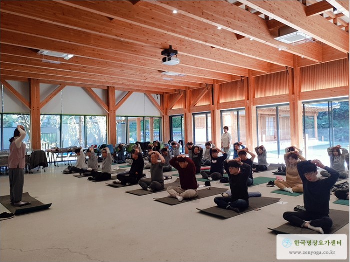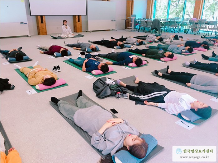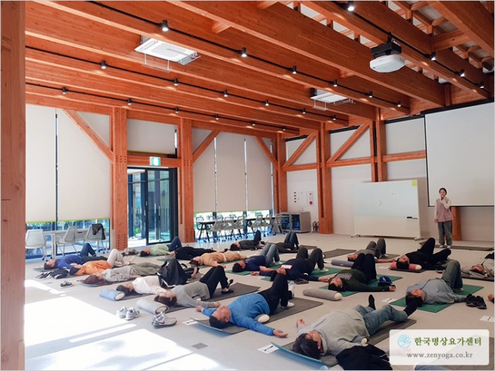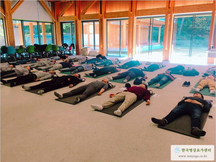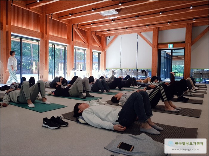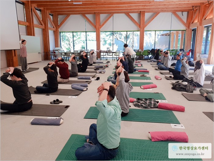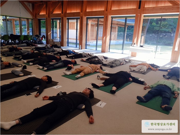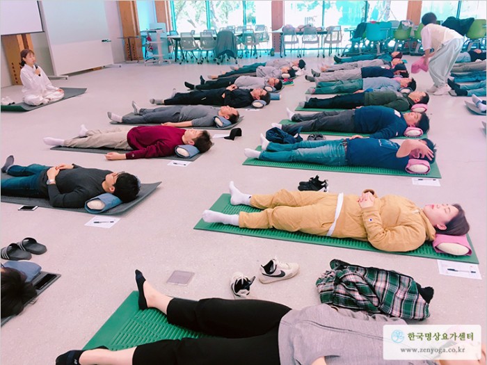 - 고도로 긴장된 업무 환경에 있는 촬영관련 감독님, 피디님, 작가님들을 대상으로 하는 수업이었습니다. 유연성이 없다는 걱정 반, 설렘 반으로 시작된 수업. 척추를 되살려주는 "코어 아사나"도 힘겹지만 밝게 해내고 점차 심신이 일체되어 편안해지는 체험을 하셨습니다. 짧은 시간이었지만 본인의 심신을 자각하고 쉴 수 있는 시간이었다고 기쁜 마음으로 인사 나누었습니다.