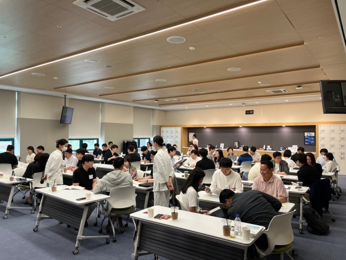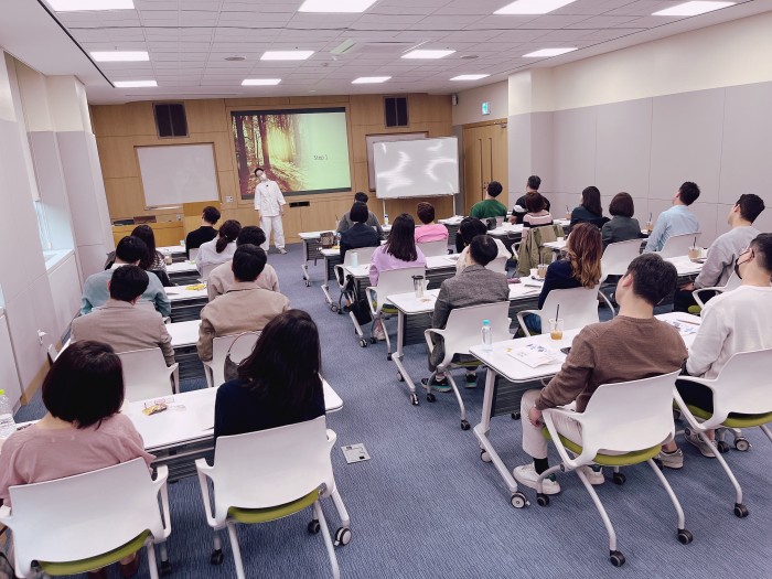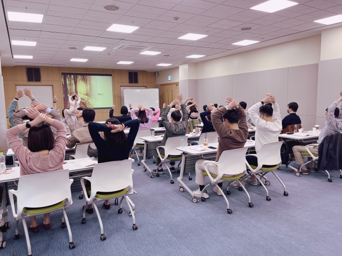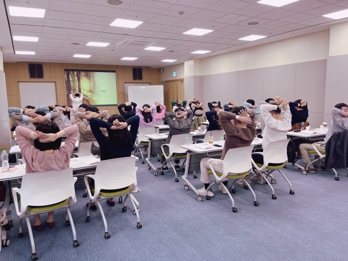 - 명상을 성장의 동력으로 삼자는 앞서가는 생각을 가진 분들이라 그런지 몸의 긴장과 정신적 피로감이 많은 상태에서 강의를 받았지만 높은 집중력과 수용력을 보여주셨습니다. 길지 않은 명상시간을 통해서도 심신의 휴식을 체험하고 스스로가 성찰되었기에 일상에 명상을 응용하고 싶다는 의견이 많았습니다. 팀원들과 활발하게 의견을 개진하는 등 높은 참여도와 다양한 체험후기가 지도자들을 행복하게 했던 출강이었습니다.